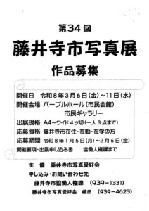 出展者:・藤井寺市写真愛好会会員・藤井寺市内居住、在勤、在学者