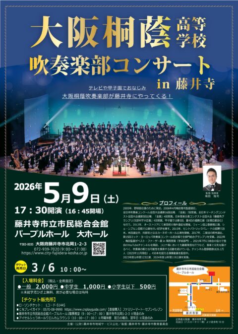 テレビや甲子園でおなじみの、大阪桐蔭高等学校吹奏楽部が今年も藤井寺にやって来ます!!